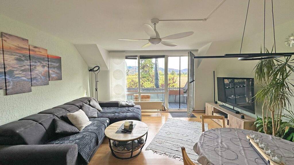 Zur Ausstattung der Wohnung gehören moderne Elemente wie Dreifachverglasung und Solarrollläden, die sowohl für Energieeffizienz als auch für zusätzlichen Wohnkomfort sorgen. Fliesen- und Laminatböden schaffen eine angenehme Mischung aus Funktionalität und Wohnlichkeit. Ein eigener Stellplatz gehört ebenfalls zur Wohnung und sorgt für zusätzlichen Komfort im Alltag.