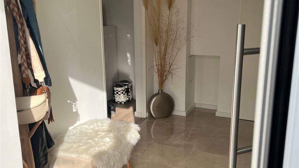 Schon beim Betreten empfängt Sie ein wohliges Gefühl - ein Zuhause, das Wärme ausstrahlt und seine Bewohner auf Anhieb umarmt. Der Eingangsbereich führt in einen kleinen, einladenden Flur. Rechts befindet sich die Waschküche mit integriertem Gäste-WC, gegenüber liegt ein flexibles Gäste- oder Arbeitszimmer, perfekt für Besuche, Homeoffice oder kreative Hobbys.
