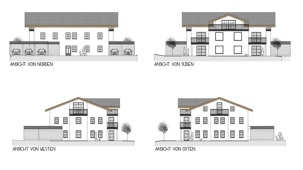 Das moderne Mehrfamilienhaus mit nur fĂĽnf Wohneinheiten besticht durch seine klare Architektursprache und ein nachhaltiges Energiekonzept nach Effizienzhaus 55.