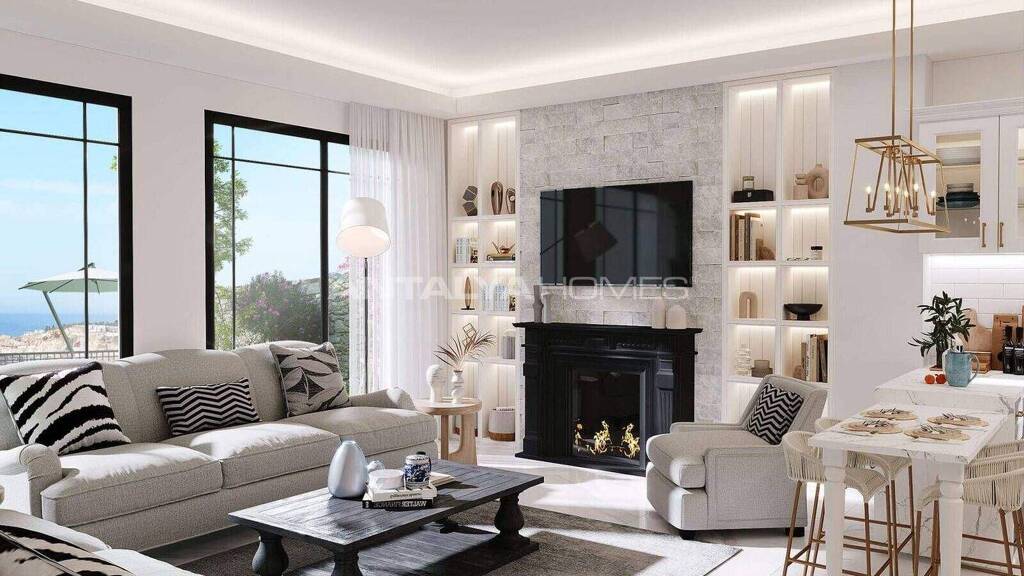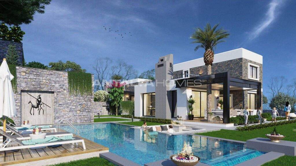 Die Villen befinden sich in einem Projekt, das aus 4 Villen auf einem Gesamtgrundstück von 4165 m² besteht. Die Villen mit modernem Design haben einen Blick auf die Insel Tavsan, weitläufige private Gärten und private Schwimmbäder.
