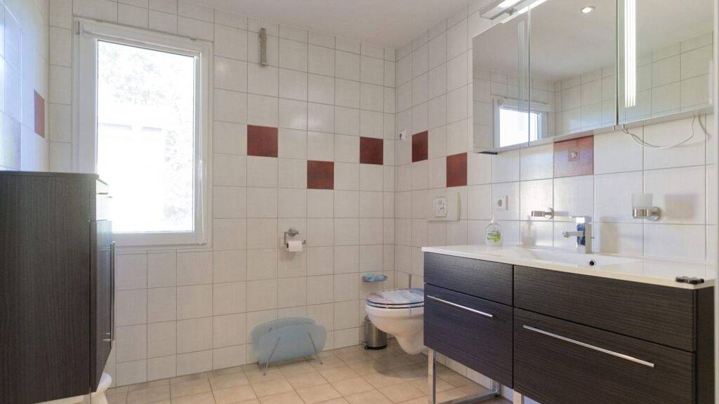 - Fußböden im Wohn- und Essbereich sowie im Bad gefliest, in den Schlafzimmern Vinyl