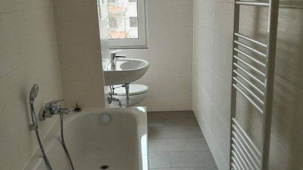 - ein modernes Bad mit Badewanne und Handtuchheizkörper