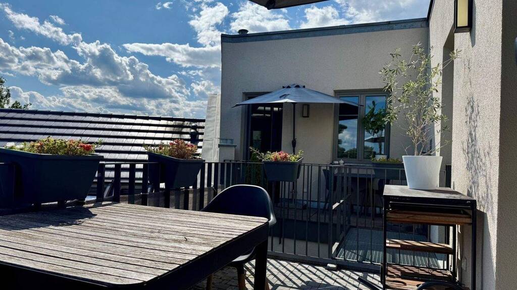 Stylish living above the rooftops of Babelsberg - modern attic apartment with two balconies and separate units