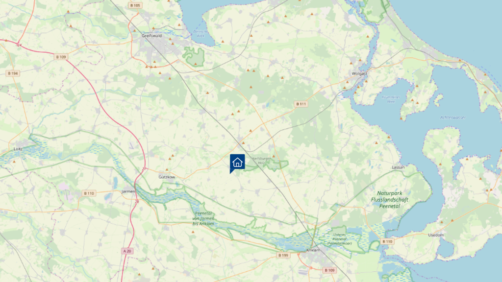 Züssow ist eine charmante Gemeinde in Mecklenburg-Vorpommern, die sich in der Nähe von Greifswald und Wolgast befindet. Die Lage von Züssow ist ideal, da sie sowohl die Ruhe des ländlichen Lebens als auch die Nähe zu einer größeren Stadt bietet. Greifswald, eine Universität -und Hansestadt, ist nur eine kurze Autofahrt von ca. 20 Minuten entfernt und bietet eine Vielzahl von kulturellen und Freizeitmöglichkeiten. Die Stadt ist von grünen Wiesen, Feldern und Wäldern umgeben, die zu Spaziergängen und Erkundungstouren einladen. Die Natur ist hier zum Greifen nah und bietet eine willkommene Abwechslung vom hektischen Stadtleben. Weiter befindet sich im Ort ein Kindergarten, eine Grundschule sowie die gemeindeeigene Feuerwehr. Der Bahnhof, der fußläufig vom Objekt sehr gut erreichbar ist, bietet gute Verbindungen u.a. mit dem ICE nach Berlin, Rostock oder auf die Insel Usedom an. Züssow ist somit hervorragend an den regionalen- und überregionalen Bahnverkehr angeschlossen. Die nächste Autobahnanbindung ist von Züssow ungefähr 10 km entfernt, sodass Berlin innerhalb von ca. zwei Stunden und Hamburg innerhalb von ca. drei Stunden erreichbar sind.