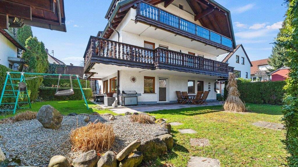 Das hier angebotene stattliche Wohnhaus am Ortsrand von Wahlwies liegt in einer ruhigen Straße und eröffnet vielfältige Nutzungsmöglichkeiten. Die aufwendige Dachkonstruktion mit Gauben und ein Erker prägen eindeutig das Bild des Hauses. Die stilvolle Architektur verbindet ländlichen Charme und Funktionalität mit hochwertiger Innenausstattung. Mit drei gut aufgeteilten Einheiten ist das Haus bestens für eine große Familie, als Mehrgenerationen-Wohnhaus, zur Eigennutzung mit zusätzlicher Vermietungsoption oder auch als reines Renditeobjekt geeignet. Die notariell beurkundete Teilungserklärung ermöglicht eine klare rechtliche Grundlage und eröffnet zahlreiche Optionen zur Nutzung des Objekts. Einzelne Einheiten können veräußert oder verschiedene Eigentümer eingetragen werden. Die gesamte Liegenschaft wurde kontinuierlich modernisiert, auch die Heizungsanlage wurde erst 2023 erneuert und entspricht den aktuellen Anforderungen. Die Erd- und Dachgeschosswohnung haben den gleichen Grundriss, beide sind in ein großflächiges Wohn- und Esszimmer, ein Schlafzimmer, Küche, Bad und Gäste-WC aufgeteilt. Beide Wohnungen haben jeweils einen Zugang zu einem großen Balkon, von dem man einen schönen und weiten Blick auf die benachbarten Obstwiesen hat. Zudem ist die Wohnung im Dachgeschoss mit einem gemütlichen Kachelofen ausgestattet. Die ehemalige Loggia wurde in den Wohnraum integriert und kann als Büro genutzt werden. Die Wohnung im Untergeschoss hat einen eigenen Eingang und ist ebenso aufgeteilt in Wohn-, Esszimmer, Schlafzimmer, Küche und Bad. Ein Schwedenofen sorgt an kalten Tagen zusätzlich für eine gemütliche Atmosphäre und wohlige Wärme. Neben der Einliegerwohnung befinden sich im Untergeschoss die Heizungsanlage und vier Abstellräume. Die großflächige Hofeinfahrt mit zwei Garagen und Carport schaffen genügend Parkmöglichkeiten und Platz für Fahrzeuge aller Art.