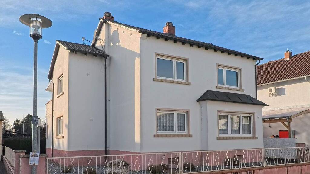 Dieses gepflegte Wohnhaus bietet ideale Voraussetzungen für Familien, die Nähe schätzen und dennoch Freiraum benötigen – ebenso für Mehrgenerationenwohnen oder das Wohnen unter einem Dach mit getrennten Einheiten. Über ein gemeinsames, ordentliches Treppenhaus sind zwei abgeschlossene Wohnungen erreichbar, die jeweils ihren eigenen Charakter und Rückzugsraum bieten. Eine Wohnlösung, die gemeinsames Leben ermöglicht – ohne auf Privatsphäre zu verzichten. Die Erdgeschosswohnung (ca. 68,5m²) überzeugt durch einen durchdachten, familienfreundlichen Grundriss. Vom Flur aus gelangt man in die Küche sowie in ein weiteres, vielseitig nutzbares Zimmer – ideal als Büro, Gäste- oder Kinderzimmer. Einen erholsamen Schlaf bereitet Ihnen das lichtdurchflutete große Schlafzimmer . Angrenzend an die Küche befindet sich das großzügige Wohn- und Esszimmer, das viel Platz für das Familienleben, gemeinsame Mahlzeiten oder gesellige Abende bietet. Ein Badezimmer mit Badewanne, WC, Waschbecken und Fenster komplettiert diese Ebene. Das Obergeschoss ( ca. 63,5 m²), renoviert im Jahr 2005, beherbergt eine ansprechende 3-Zimmer-Wohnung mit modernem Badezimmer, gemütlichem Schlafzimmer und hellem Wohnbereich. Besonders hervorzuheben ist der Balkon, der in den Sommermonaten zu entspannten Stunden im Freien einlädt. Über das Treppenhaus führt eine weitere Treppe in das ausgebaute Dachgeschoss. Dort befindet sich unter der Dachschräge ein zusätzliches, gemütliches Zimmer – ideal als Hobby-, Arbeits- oder Gästezimmer. Ob Eltern, erwachsene Kinder oder Großeltern – dieses Haus bietet vielfältige Möglichkeiten, mehrere Generationen harmonisch unter einem Dach zu vereinen. Getrennte Wohneinheiten, zusätzliche Nutzflächen sowie Außenstellplätze schaffen die nötige Flexibilität für unterschiedliche Lebensphasen. Zum Anwesen gehören außerdem eine gemauerte Garage sowie ein separates Nebengebäude, das sich hervorragend als Werkstatt oder Lagerraum eignet. Die Hofeinfahrt bietet Parkmöglichkeit für. bis zu 2 Fahrzeuge.