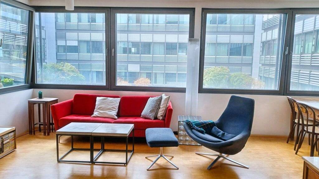 Die Businesswohnung mit kosmopolitischem Flair befindet sich im 5. Obergeschoss eines architektonisch interessanten Gebäudekomplexes der Postmoderne. Das luxuriöse Apartmenthaus mit Aufzug, Tiefgarage, Doorman und Gemeinschaftsdachterrasse liegt mitten in der Stadt.