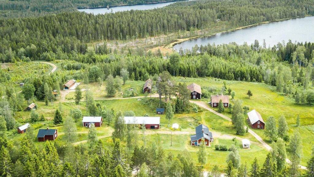Ausgestattet mit einem Wohnhaus, zwei Gästehäusern und vielen Wirtschaftsgebäuden, neigt sich das Grundstück zum Finnsjön mit langer eigener Uferlinie.