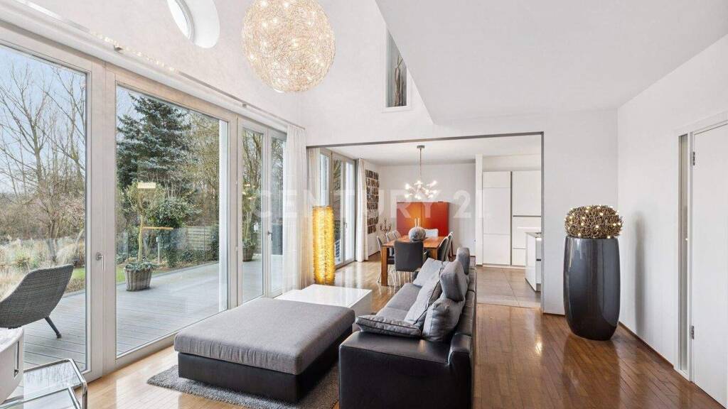 In privilegierter Lage direkt an der Ems präsentiert sich dieses außergewöhnliche Anwesen als architektonisch klar positioniertes Einfamilienhaus mit repräsentativem Anspruch.
