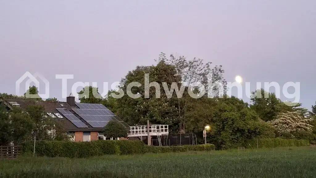Ich biete mein helles, gemütliches, freistehendes Haus mit Garten, Terrasse und traumhaftem Ausblick nach Westen über die Felder zum Tausch an. Es hat 3 Zimmer, Küche, Bad, Wohnzimmer, Abstellkammer und einen großen Keller. Die Wohnfläche im EG ist 100 m² groß.