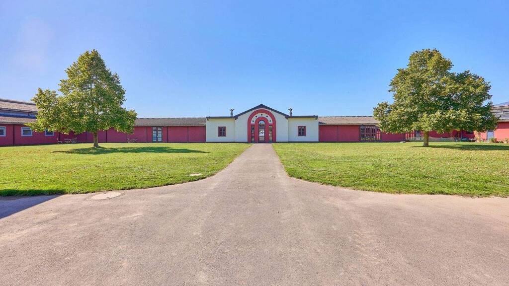 Wohnmöglichkeit: - Baujahr Gebäude: 2000 - Derzeit gibt es eine 49 m² Mitarbeiterwohnung mit angrenzendem Büro (vermietet) - Heizung: Strom (Gastank vorhanden) - Fenster: Zweifach-Verglasung - Keller: nicht unterkellert - In 2023 wurde die kleine Wohnung renoviert Hinweis: Die Reitanlage wurde so erbaut, dass der mittlere Teil der Laufstelle ursprünglich als sehr große Wohnung über zwei Etagen ausgebaut werden sollte, der Plan wurde nicht verfolgt und es wurden Laufställe eingebaut und eine Nutzungsänderung dazu beantragt. Stallgebäude: - Baujahr 2000 - Tränken vorhanden (frostfrei) - Reiterstübchen und mehrere Sattelkammern vorhanden - 4x WC für Kunden vorhanden, eine davon behindertengerecht - Hersteller Stallungen: Lambert Geerkens - Ausgelegt für 40-60 Pferde (je nach Nutzung der Laufställe): - 16 Paddockboxen - 7 Innenboxen - 14 Offenställe (Laufställe) ursprünglich für bis zu 4 Pferde (Maße 7 x 22 Meter) - 19 Fensterboxen Reithalle 1: - Baujahr: 2000 - Reitfläche: ca. 20 x 60 Meter - Boden: Sand-/Vließboden - Dach: Wellplatten - Bauweise: Leimbinder - Hersteller: Lambert Geerkens Reithalle 2: - Baujahr: 2000 - Reitfläche: ca. 20 x 40 Meter - Boden: Sandboden inkl. Holzspäne - Dach: Wellplatten - Bauweise: Leimbinder - Hersteller: Lambert Geerkens Reitplatz 1: - Baujahr: 2000 - Reitfläche: 80 x 20 Meter - Boden: Sandboden, drainiert Reitplatz 2: - Baujahr: 2000 - Reitfläche: 60 x 20 Meter - Boden: Sandboden, drainiert Koppeln: Im Eigentum befinden sich direkt Koppeln am Hof Weiteres: - Longierzirkel aus 2000 - 4 Zisternen - Bergehalle aus 2010 zur Futterlagerung, Schotter Unterbau - Genehmigte Mistplatte - Kundenparkplätze - Winterpaddocks
