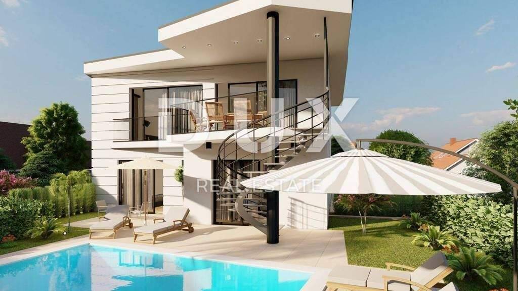 Dieses wunderschöne Doppelhaus ist ein originelles und modernes architektonisches Werk. Es liegt in der Nähe des Meeres, etwa 100 Meter von schönen Stränden entfernt. Im Untergeschoss des Gebäudes befinden sich ein Schlafzimmer mit Bad, eine Toilette, ein Technikraum mit Waschküche und ein multifunktionaler Raum, der eine Taverne, ein Spielzimmer, ein Wellness oder alles andere sein kann, was der Eigentümer wählt. Im Erdgeschoss befinden sich zwei Schlafzimmer, jedes mit eigenem Bad und Zugang zu einer überdachten Terrasse. Im ersten Stock gibt es eine Toilette, einen offenen Raum mit Küche, ein Esszimmer und ein Wohnzimmer, von dem aus man Zugang zu einer überdachten Terrasse hat, von der man über eine Wendeltreppe hinunter in einen schönen Garten mit Schwimmbecken gelangt Pool und eine eingerichtete Liegewiese. Die Anlage verfügt über zwei Parkplätze. Die gesamte Anlage verfügt über Fußbodenheizung, während die Kühlung durch Klimaanlagen erfolgt. Im Gebäude werden hochwertige Materialien in bewährter Qualität verbaut. Eine Alarm- und Videoüberwachung, eine Autoladestation sowie eine Solaranlage auf dem Dach des Gebäudes sind vorbereitet. Architektonisch ansprechende Häuser werden in höchster Qualität gebaut, schlüsselfertig verkauft und mit hochwertiger Ausstattung ausgestattet Aluminiumschreinerei, Fußbodenheizung und Klimaanlage, beheizte Schwimmbäder, erstklassige italienische Keramik, vor allem -Klasse deutsches Parkett, Sanitärausstattung der Marken Villeroy&Boch, Grohe und Hansgrohe. Das Objekt befindet sich im Mehrwertsteuersystem. Die Fertigstellung wird für Ende 2023 erwartet.