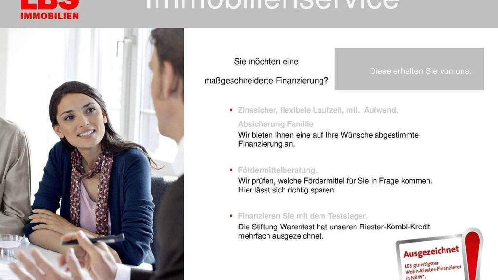 Gerne erstellen wir Ihnen ein Finanzierungsangebot unter Einbindung aller staatlichen Förderungen des Landes und Bundes (KfW-Darlehen, Riesterförderung, öffentliche Mittel).