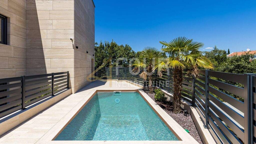 Eine außergewöhnlich hochwertige Immobilie, die hervorragend ausgestattet ist, über Fußbodenheizung, Mitsubishi-Klimaanlage in jedem Zimmer, hochwertige Bodenbeläge - polierte Keramikfliesen, PVC-Außenschreinereiarbeiten, hochwertige Innenholzarbeiten - Walnussholz, Sicherheitseingangstüren, Wandverkleidungen - attraktive abwaschbare Tapeten, hochwertige Sanitärkeramik, eine hinterlüftete Fassade aus Travertinstein und Glasgeländern, Alarmanlage, Gegensprechanlage und Videoüberwachung verfügt.