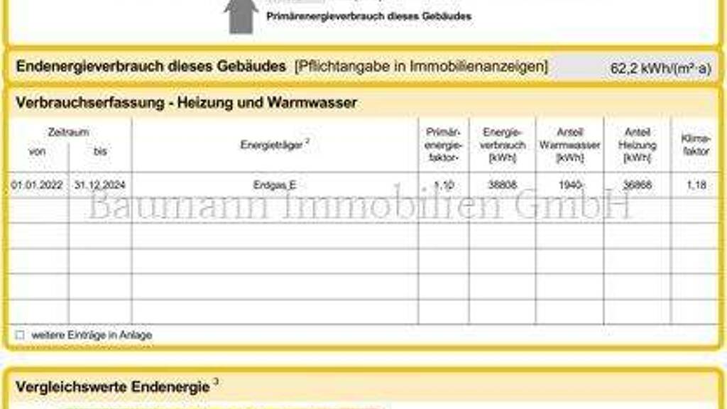 Endenergieverbrauch beträgt 62.20 kwh/(m²*a).