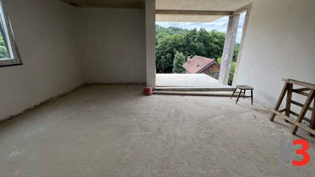 Zum Verkauf steht eine moderne 4-Zimmer-Wohnung in einem neu errichteten Wohngebäude, gelegen im ersten Stock eines kleineren Wohnkomplexes.