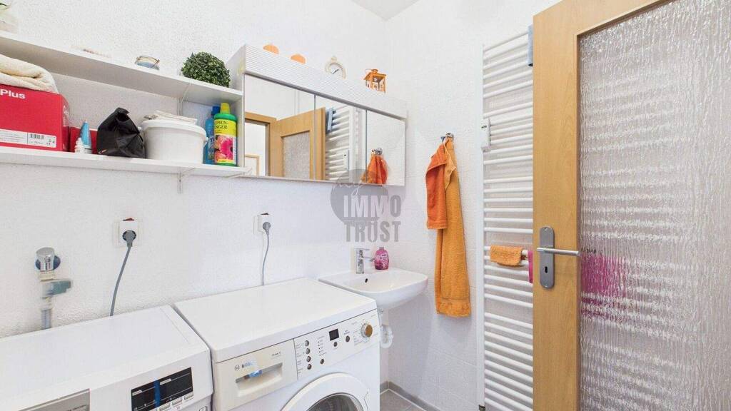 Zu den weiteren Annehmlichkeiten gehören ein eigener Kellerraum, ein Fahrradkeller sowie die Mitnutzung eines Waschraums im Untergeschoss.