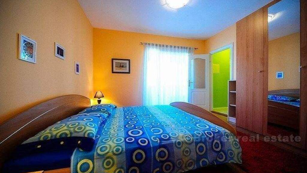 Neubau Haus mit Schwimmbad befindet sich auf der Insel in einer ruhigen Umgebung. 200 m vom Strand, Geschäften und Restaurants entfernt. Gesamt Wohnfläche von 200 m2, und die Kapazität ist 8 +1. Gechartert als Ganzes! Es besteht aus zwei Etagen. Erdgeschoss: große Küche, Esszimmer, Wohnzimmer und große Terrasse (Geschirrspüler, Kühlschrank mit Eismaschine, Backofen, Mikrowelle, Toaster, Geschirrspüler für 12 Personen ...), Doppelzimmer mit Bad und Balkon (Dusche, WC) , Großes Bad (Jacuzzi, Waschmaschine ...). Erster Stock: kleine Küche, Wohnzimmer und Terrasse, 3 Doppelzimmer - jedes mit eigenem Bad und Balkon mit Blick auf das Meer. Der Hinterhof Pool ist 8 x 4 m, und Dusche mit beheiztem Wasser. Parkplatz für 3 Autos. Rauchen im Haus und Haustiere sind nicht erlaubt.