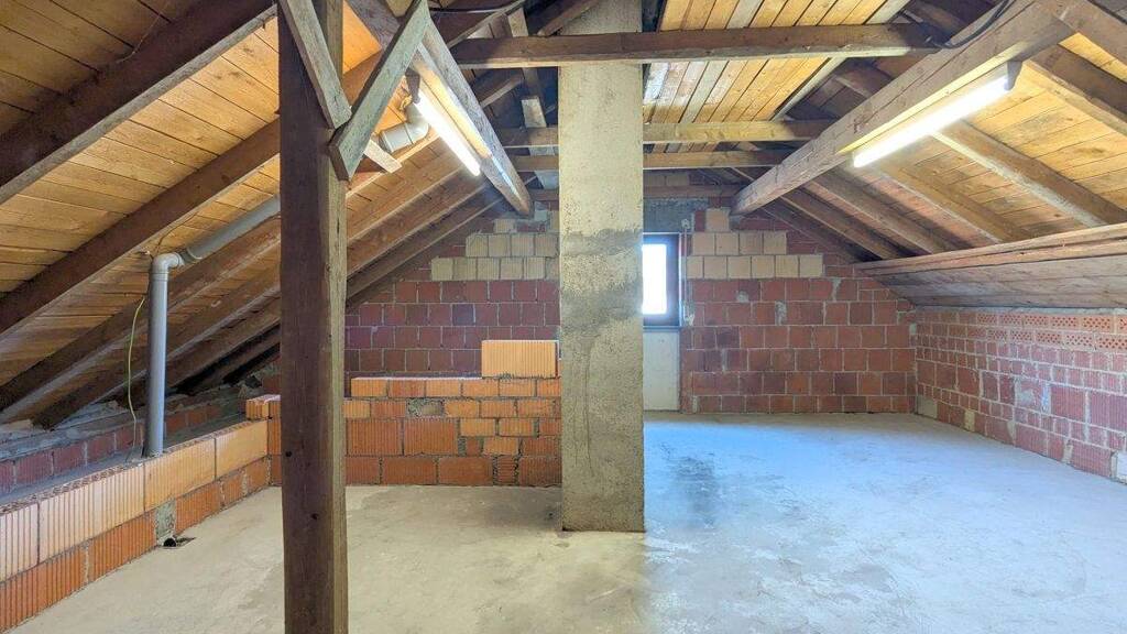Das Einfamilienhaus wurde in Massivbauweise errichtet und ist voll unterkellert. Der nicht ausgebaute Dachstuhl entspricht dem Baujahr.