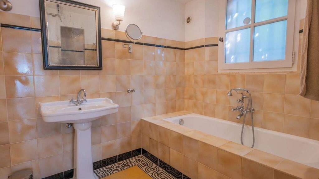 Diese charmante und zeitlose Villa bietet einen hohen Wohnkomfort und verfügt über fünf Schlafzimmer, ein Esszimmer und ein Wohnzimmer mit Kamin, eine voll ausgestattete Küche, eine Garage und einen Keller.