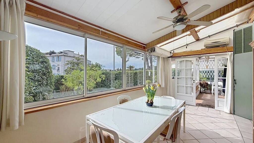 In Cannes, im Viertel Petit Juas, bietet dieses charmante und sehr solide Stadthaus über 140 m² Wohnfläche, davon 123 m² auf einer Ebene mit 2 Schlafzimmern, ergänzt durch ein unabhängiges 18 m² Studio und einen Keller von mehr als 77 m². Ruhige, residential Lage.