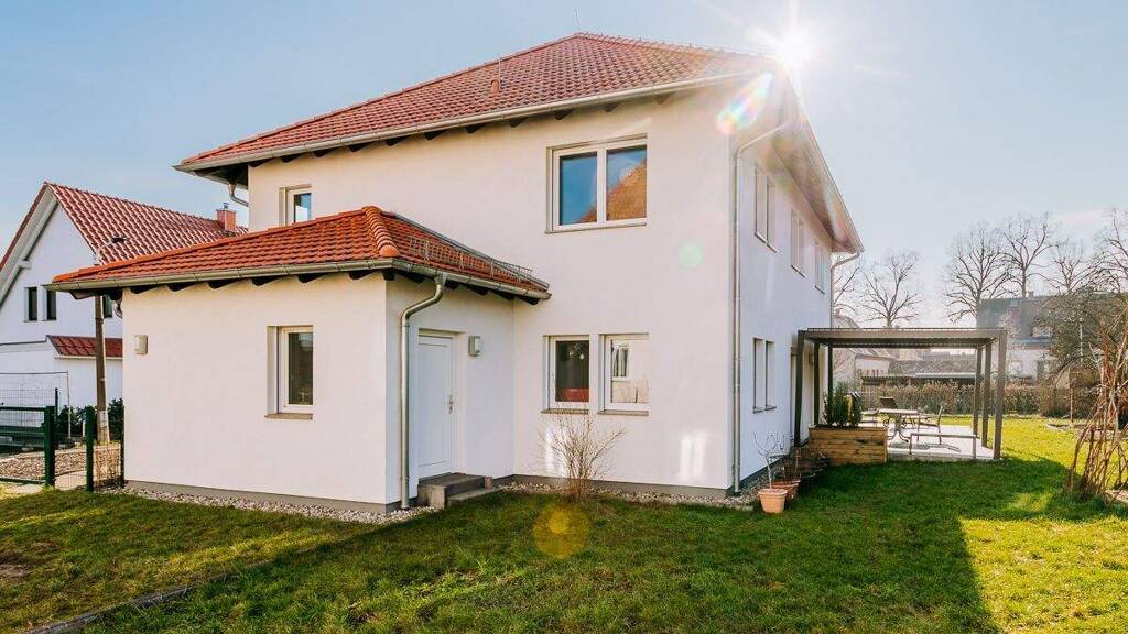 Im Jahr 2018 wurde dieses moderne und energieeffiziente Einfamilienhaus in Holzständerbauweise durch die renommierte Firma Weberhaus errichtet. Sieben große Zimmer, ein Tageslicht-Masterbad, ein Tageslicht-Gästebad, eine offene Wohnküche, ein Hauswirtschaftsraum und viel Stauraum erwarten Sie in Ihrem zukünftigen Zuhause. Insbesondere das große Wohnzimmer zeigt sich mit seinen drei Terrassenausgängen lichtdurchflutet und freundlich -und strahlt eine atemberaubende Wohlfühl-Atmosphäre aus. Hier genießen Sie Ihre Quality-time mit Ihrer Familie oder entspannen mit einem spannenden Buch und einem Glas Wein auf Ihrer Couch.