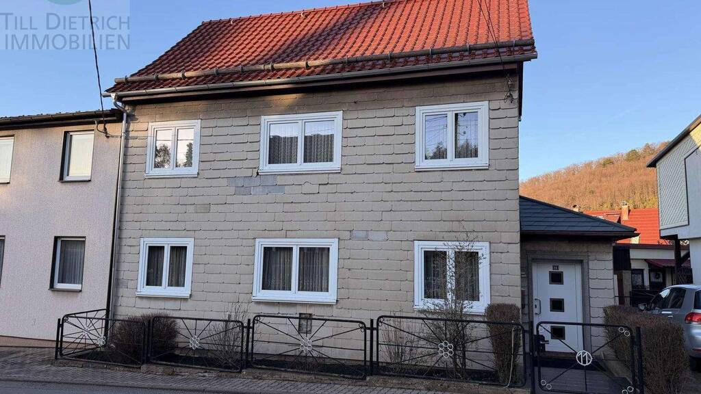 Zum Verkauf steht ein gepflegtes Einfamilienhaus mit ca. 130 m² Wohnfläche, 5 Zimmern, Garage, Keller und Garten in ruhiger Lage von Martinroda. Wichtige Sanierungen wurden bereits durchgeführt. Ideal für Käufer, die ein Haus mit Substanz und Entwicklungsmöglichkeiten suchen.