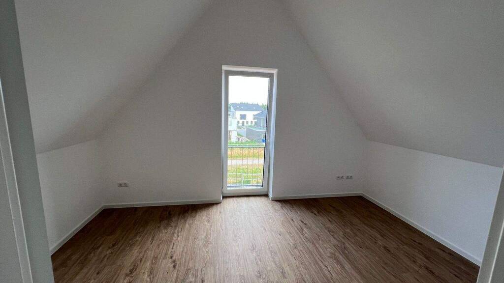 Im Erdgeschoss befinden sich die offene Küche ( im Mietpreis innbegriffen) nebst Wohn- und Essbereich, ein Gäste-WC und ein Hauswirtschaftsraum mit Anschluss für Waschmaschine und Trockner. Zudem gibt es im Hausflur eine Nische für eine Garderobe. Über die Treppe gelangen Sie ins Obergeschoss. Dort befindet sich das Badezimmer mit moderner offener Dusche und Badewanne sowie 3 Zimmer, die zum Schlafen, als Arbeits- oder Kinderzimmer genutzt werden können. Zwei weitere Zimmer und der Technikraum mit der Heizanlage befinden sich im ausgebauten Dachgeschoss.
