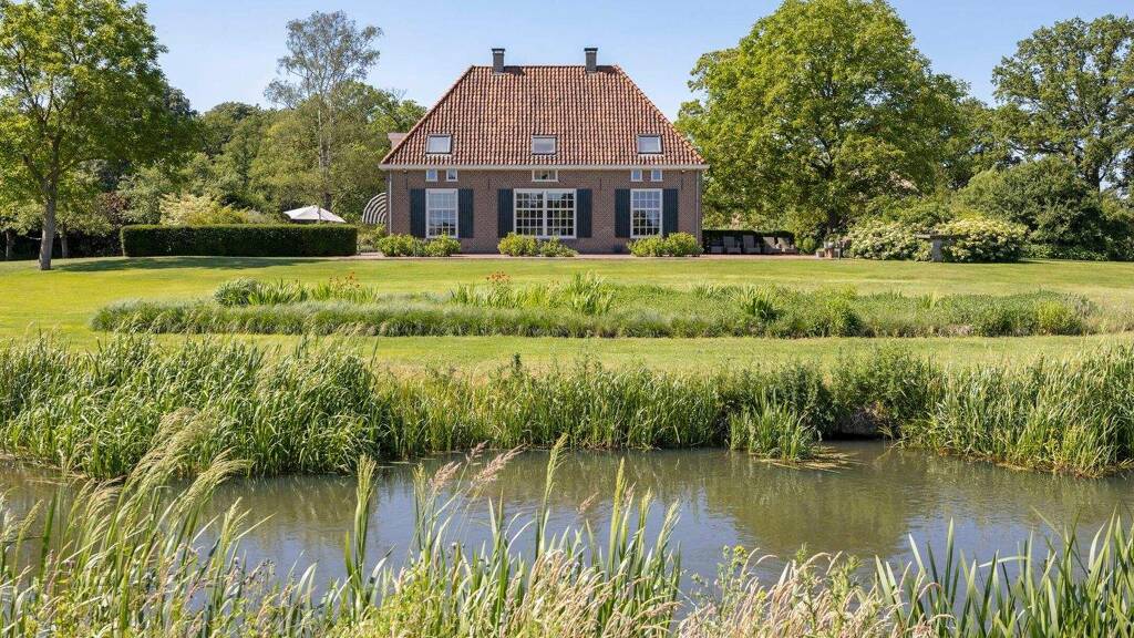 this beautiful farmhouse, with a living area of 438 m² and a capacity of over 2,500 m³, forms with the surrounding land of approximately 7.5 ha a frankly imposing ensemble. there is a lot of variety in the picture; an oak forest, a beech forest, grassland, flower meadow, a fish ladder, a dream of an ornamental garden... and, rumor has it that an amorous pair of beavers even built a love nest by the water. romance at its finest! at the heart is the beautiful farmhouse, overlooking the berkel river.