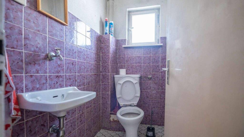 Im Erdgeschoss finden Sie zudem ein Badezimmer sowie ein separates WC. Diese sanitären Einrichtungen stammen noch aus den 1960er Jahren und sollten im Zuge der Sanierung vollständig erneuert und modernisiert werden.