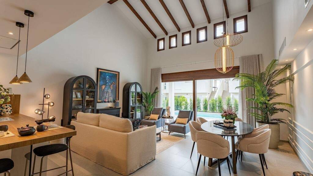 Neubau-Villen mit 3 Schlafzimmern, 2 Bädern, einer offenen Küche mit Wohnbereich, wo Terrassentüren in den Garten mit Schwimmbad und Parkplatz abseits der Straße führen.