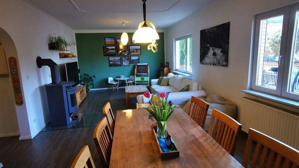 Die ebenerdige Wohnform, der Gartenbereich sowie der Kaminofen im Wohnzimmer schaffen ein angenehmes Wohngefühl - ideal für Paare, kleine Familien oder alle, die ruhiges Wohnen im Grünen mit guter Anbindung an Berlin verbinden möchten.
