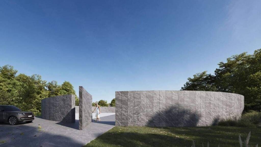 Die Landschaftsgestaltung koexistiert mit der Architektur und hebt deren Integration in die Umgebung hervor.