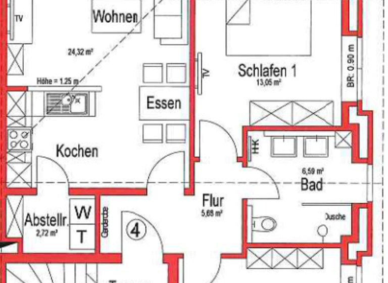 - Badezimmer: Bad mit Dusche, Bad mit Fenster