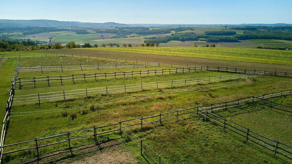 Diese professionelle Reitsportanlage im rheinland-pfälzischen Lonnig bietet optimale Bedingungen für ambitionierte Pferdesportler, Züchter oder Investoren auf 83.180 m² Grundstück im Eigentum. Die weitläufige und durchdacht konzipierte Anlage wurde im Jahr 2000 errichtet und ist auf die Haltung und Versorgung von bis zu 60 Pferden ausgelegt. Zwei Reithallen, zwei Reitplätze, diverse Stallformen und eine funktionale Infrastruktur machen sie zu einem idealen Standort für vielfältige Nutzungskonzepte im Reitsport. Das Stallgebäude wurde vom renommierten Hersteller Lambert Geerkens errichtet. Insgesamt stehen 16 Paddockboxen, 7 Innenboxen, 14 Offenställe (Laufställe für 1-4 Pferde) mit einer Länge von 22 Metern sowie 19 Fensterboxen zur Verfügung. Mehrere Sattelkammern, Futterkammern und sanitäre Anlagen für Kunden runden das Angebot ab. Die Anlage verfügt über zwei Reithallen mit den Maßen 20 x 60 Meter bzw. 20 x 40 Meter, jeweils in Leimbinder-Bauweise mit Sandboden. Zwei weitere Reitplätze (80 x 20 Meter und 60 x 20 Meter), beide mit drainiertem Sandboden, ermöglichen ganzjähriges Training im Außenbereich. Ein Longierzirkel sowie angrenzende Koppelflächen im Eigentum ergänzen das Gesamtbild sinnvoll. Vier Zisternen, Kundenparkplätze und eine große Bergehalle zur Futterlagerung mit Schotter-Unterbau aus dem Jahr 2010 bieten die notwendige Infrastruktur für einen reibungslosen Betrieb. Es besteht die Möglichkeit, im zentralen Bauteil der Anlage eine großzügige, über zwei Etagen ausgebaute Wohnung mit sonniger Terrasse und wunderschönem Fernblick in die Vordereifel zu realisieren. Zur Wohnnutzung ist derzeit eine ca. 49 m² große Mitarbeiterwohnung mit angrenzendem Büro vorhanden, welche vermietet ist. Die Wärmezufuhr erfolgt über Strom, ein Gastank ist jedoch auch vorhanden; die Fenster sind zweifach verglast. Im Jahr 2023 wurde die bestehende Wohnung modernisiert. Besonderheit: Die Reitanlage liegt in Mitten des Sonderbaugebietes „Wohnen mit Pferden“.