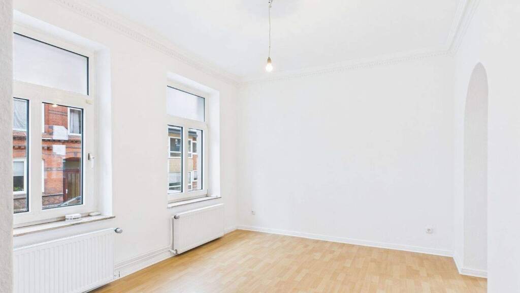 Diese frisch renovierte Wohnung im EG des Hauses verfügt über 1 1/2 zur Straßenseite hin gelegene Zimmer mit Laminatboden. Ein zusätzlicher kleiner Raum befindet sich im zur Hofseite hin gelegenen Teil der Wohnung. Die Küche besteht aus einem neuen Herd, einer Einbauspüle mit Unterschrank und Hängeschränken. Das innenliegende Bad ist hell gefliest und wurde mit einer Dusche ausgestattet. Ein Kellerraum steht ebenfalls zur Verfügung.