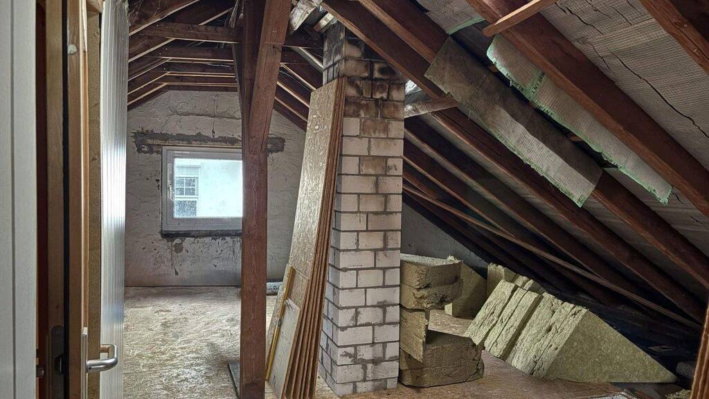Das Dachgeschoss ist bislang unausgebaut. Dort lässt sich mit entsprechenden Umbaumaßnahmen eine dritte Wohnung errichten. Hier könnten weitere 40 Quadratmeter Wohnfläche entstehen.