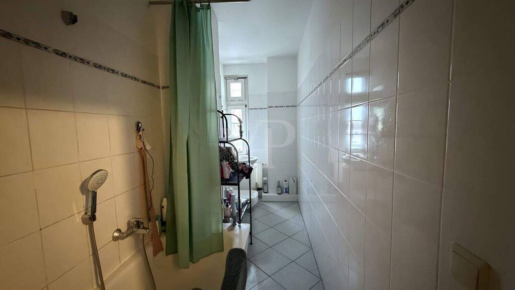 Die Küche ist zweckmäßig angelegt und ermöglicht eine effiziente Nutzung des vorhandenen Raums. Dank des klassischen Grundrisses lässt sich auch hier mit wenig Aufwand eine zeitgemäße Kücheneinrichtung realisieren. Das Badezimmer ist mit einer Dusche, einem Waschbecken sowie einem WC ausgestattet und orientiert sich in seiner Gestaltung an der Funktionalität.