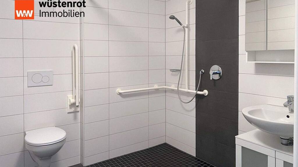 - barrierefreies Bad mit Dusche, Waschbecken und WC