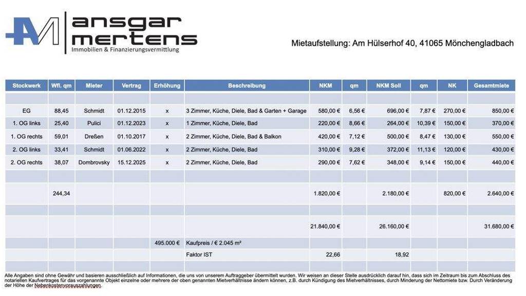Ist-Mieteinnahmen pro Jahr: 21.840,00 EUR