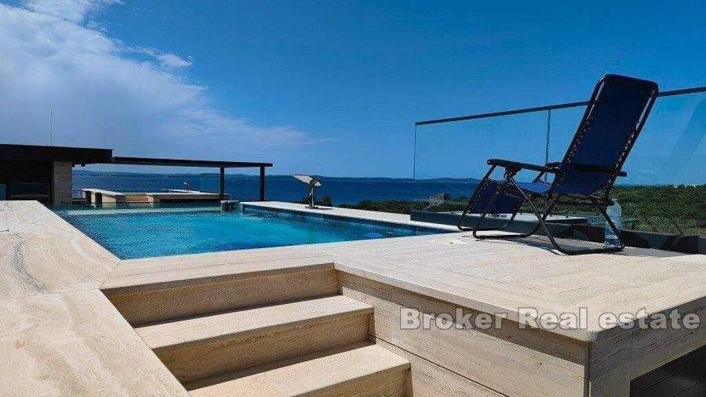 Im Obergeschoss befindet sich eine Dachterrasse mit Blick auf das Meer. Auf der Dachterrasse gibt es einen Swimmingpool, eine Sommerküche mit Platz für Familientreffen und einen Whirlpool.