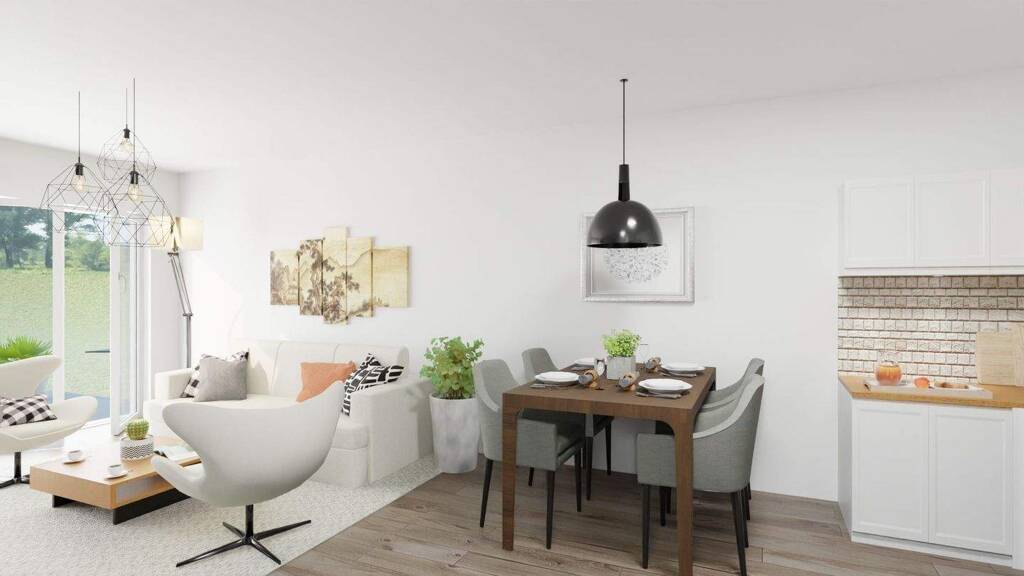 HINWEIS: Die Visualisierungen stellen eine beispielhafte Gestaltung der Wohnräume dar. Die Immobilie wird ohne Möblierung und ohne Kücheneinrichtung angeboten.
