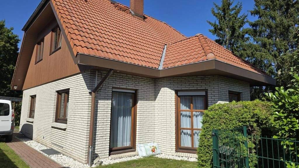 Das familienfreundliche und vollunterkellerte Einfamilienhaus mit markantem Krüppelwalmdach, einem Erker mit dreiseitig angeordneten Sprossenfenstern, überdachtem Eingangsbereich und Klinkerfassade wurde 1994 von der renommierten Firma KAMPA als ökologisches und nachhaltiges Fertighaus in Holzständerbauweise auf einem insgesamt ca. 1.277 m² großen Grundstück erbaut, verbunden mit einem Sondernutzungsrecht an einem hinterliegendem Grundstücksteil von ca. 639 m² Größe als Hammergrundstück mit eigener Zufahrt vom Nennhauser Damm aus, vergleichbar einem Grundstück mit Realteilung.