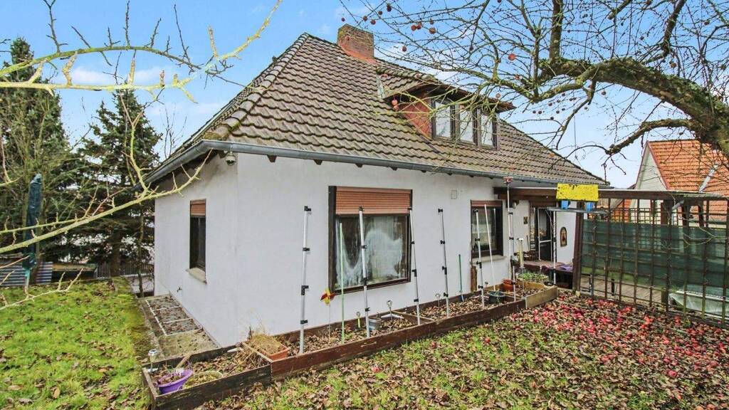 Der Außenbereich bietet mit Terrasse und Balkon attraktive Möglichkeiten zur Erholung. Der gepflegte Garten mit Obstbäumen, kleinem Teich, Gartenhaus sowie überdachten Abstellflächen ergänzt das Angebot. Zusätzliche Nutzflächen stehen in Form eines Handwerksraums mit Nebenräumen zur Verfügung. Eine Garage sowie ein zusätzlicher Stellplatz runden das Gesamtbild ab. Das Objekt befindet sich insgesamt in einem altersentsprechend gepflegten Zustand; in den vergangenen Jahren wurden unter anderem die Regenrinnen erneuert und die Fassade neu gestrichen.