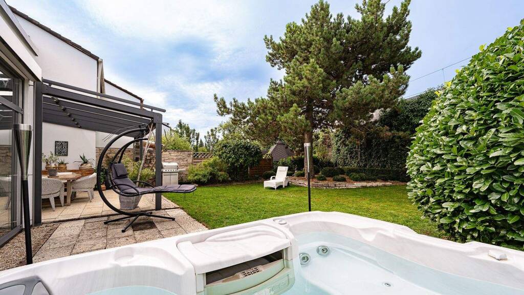 Der liebevoll gestaltete Garten garantiert Privatsphäre, ganzjährige Begrünung und besondere Highlights wie einen Whirlpool und ein praktisches Gartenhaus. Die Küche mit hochwertiger Einbauküche bildet den familiären Mittelpunkt, während das stilvolle Tageslichtbad mit bodengleicher Dusche überzeugt. Eine Garage mit Starkstromanschluss sowie ein zusätzlicher Stellplatz bieten hohen Komfort.