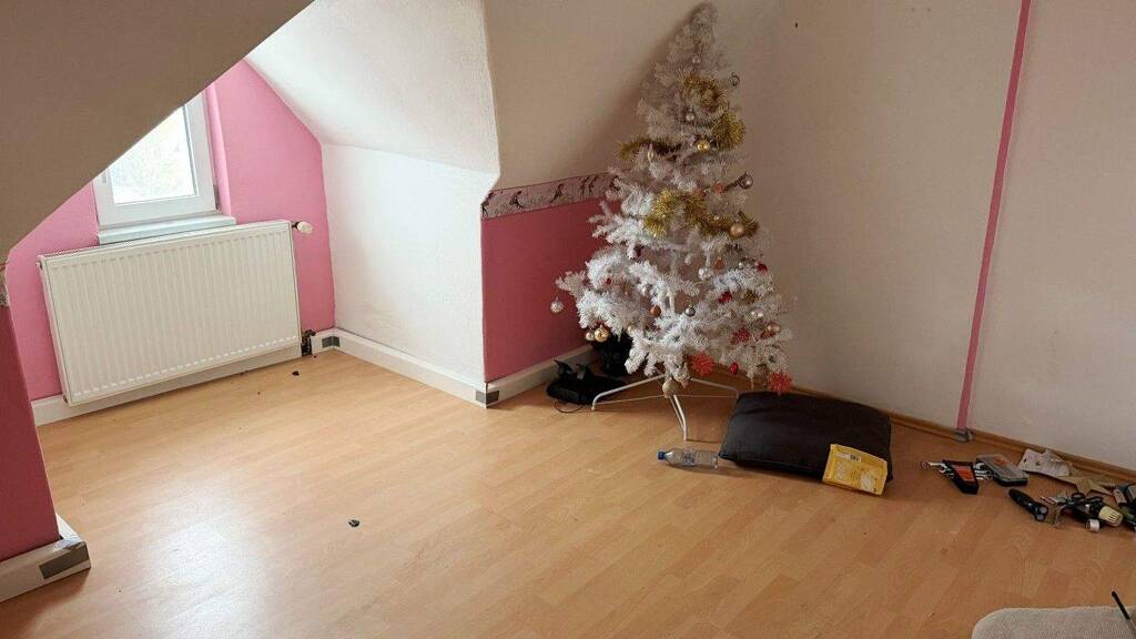 Im Erdgeschoss stehen vier Zimmer, eine Küche, ein Badezimmer sowie ein Flur zur Verfügung. Das 1. Obergeschoss umfasst einen Raum, zwei Zimmer, eine Küche, ein Bad, ein separates WC und einen Flur. Im Dachgeschoss befinden sich drei Zimmer, ein Bad, ein WC sowie ein Flur. Das Haus ist teilweise unterkellert und bietet zusätzliche Nutzfläche.