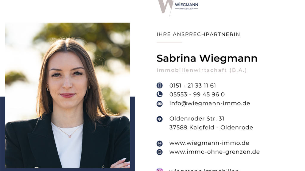 Sonstiges Weitere Informationen zum Angebot erhalten Sie durch Frau Wiegmann unter 05553- 99 45 96 0 oder mobil unter 0151 - 21 33 11 61.