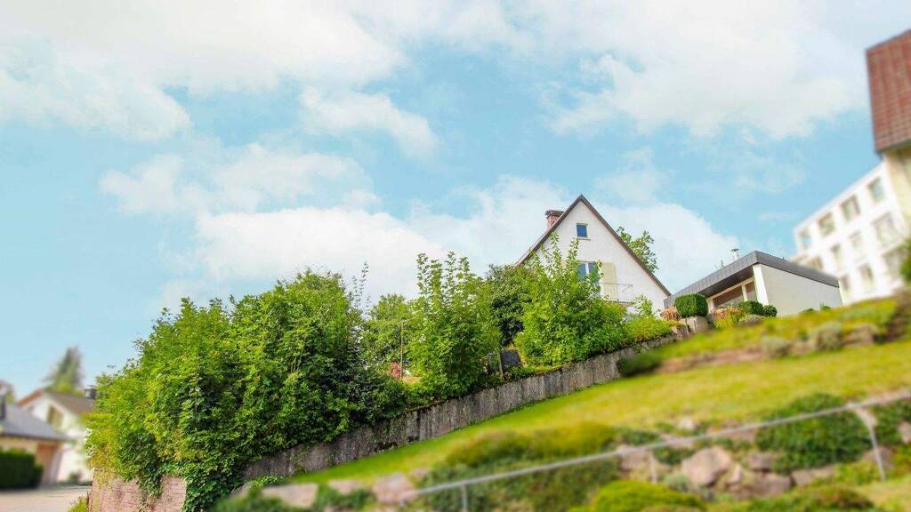 Im Außenbereich erwarten Sie zwei Balkone, eine Loggia und ein ca. 726 m² großes Grundstück in Hanglage. Der weitläufige Garten mit zwei Terrassen bietet zahlreiche Gestaltungsmöglichkeiten und lädt zum Entspannen ein. Der Keller umfasst eine Waschküche, eine kleine Werkstatt, einen Abstellraum und einen Heizungsraum. Zusätzlich verfügt das Objekt über ein Nebengebäude, das als Büro und Geräteschuppen dient und zusätzlichen Stauraum bietet. Eine Garage und ein Freistellplatz sorgen dafür, dass Ihre Pkw sicher untergebracht sind.