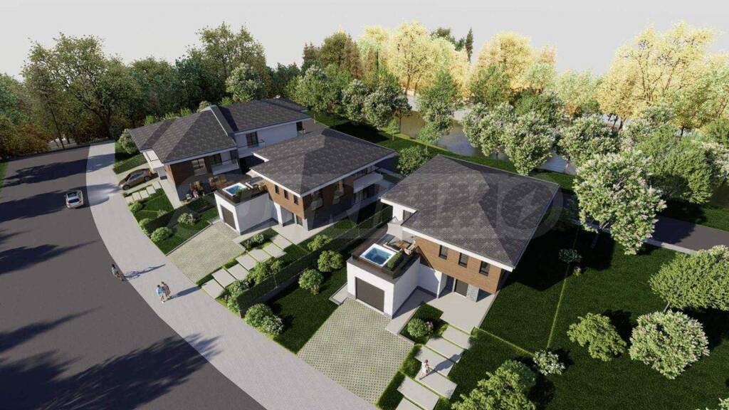 Das Projekt vereint vier Einfamilienhäuser auf separaten Grundstücken, die durch eine ruhige, interne Straße miteinander verbunden sind. Die Hauptallee prägt die Komposition des Komplexes, wobei drei der Häuser harmonisch in die Topografie integriert sind und so für natürliche Abstände, mehr Licht und maximale Privatsphäre sorgen.