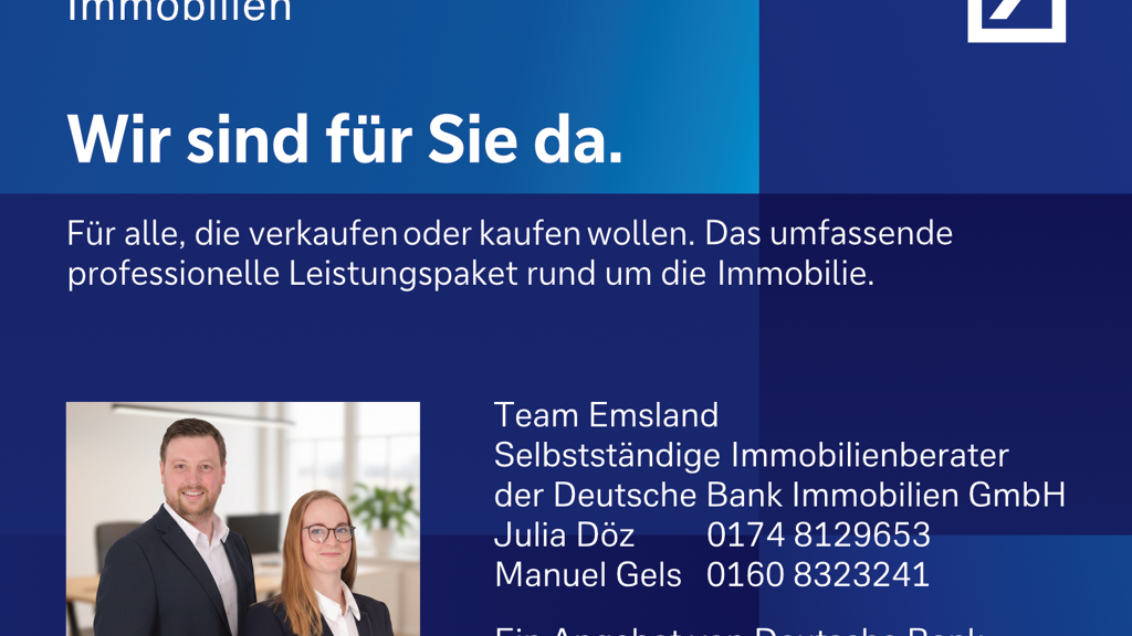 Alle Informationen, Bilder und Dateien im Exposé beruhen auf den Informationen und übergebenen Unterlagen der Verkäufer bzw. Dritter. Eine Haftung für die Angaben im Exposé kann deshalb durch die Deutsche Bank Immobilien GmbH nicht übernommen werden. Unsere Angebote sind freibleibend und unverbindlich. Zwischenverkauf und Preisänderungen bleiben ausdrücklich vorbehalten.